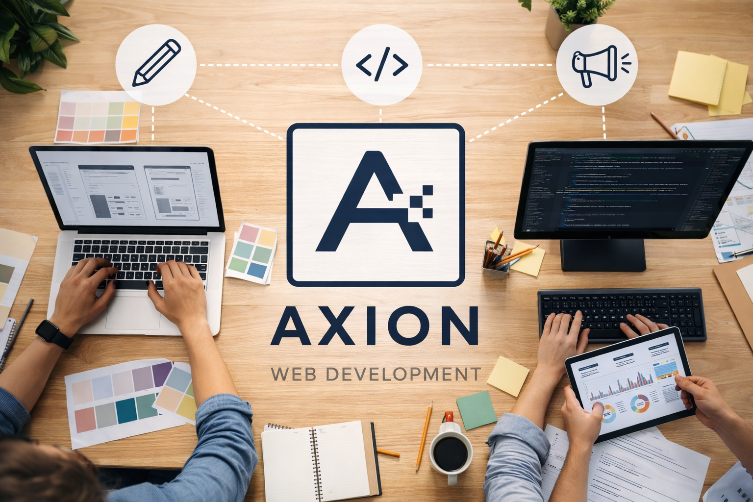 En Axion desarrollamos soluciones digitales completas para negocios. Creamos páginas web corporativas, tiendas online con sistemas de pago integrados y menús digitales con código QR para restaurantes y cafeterías. Cada proyecto se diseña pensando en las necesidades del cliente, combinando diseño atractivo, funcionalidad y rendimiento para ayudar a los negocios a destacar frente a su competencia.